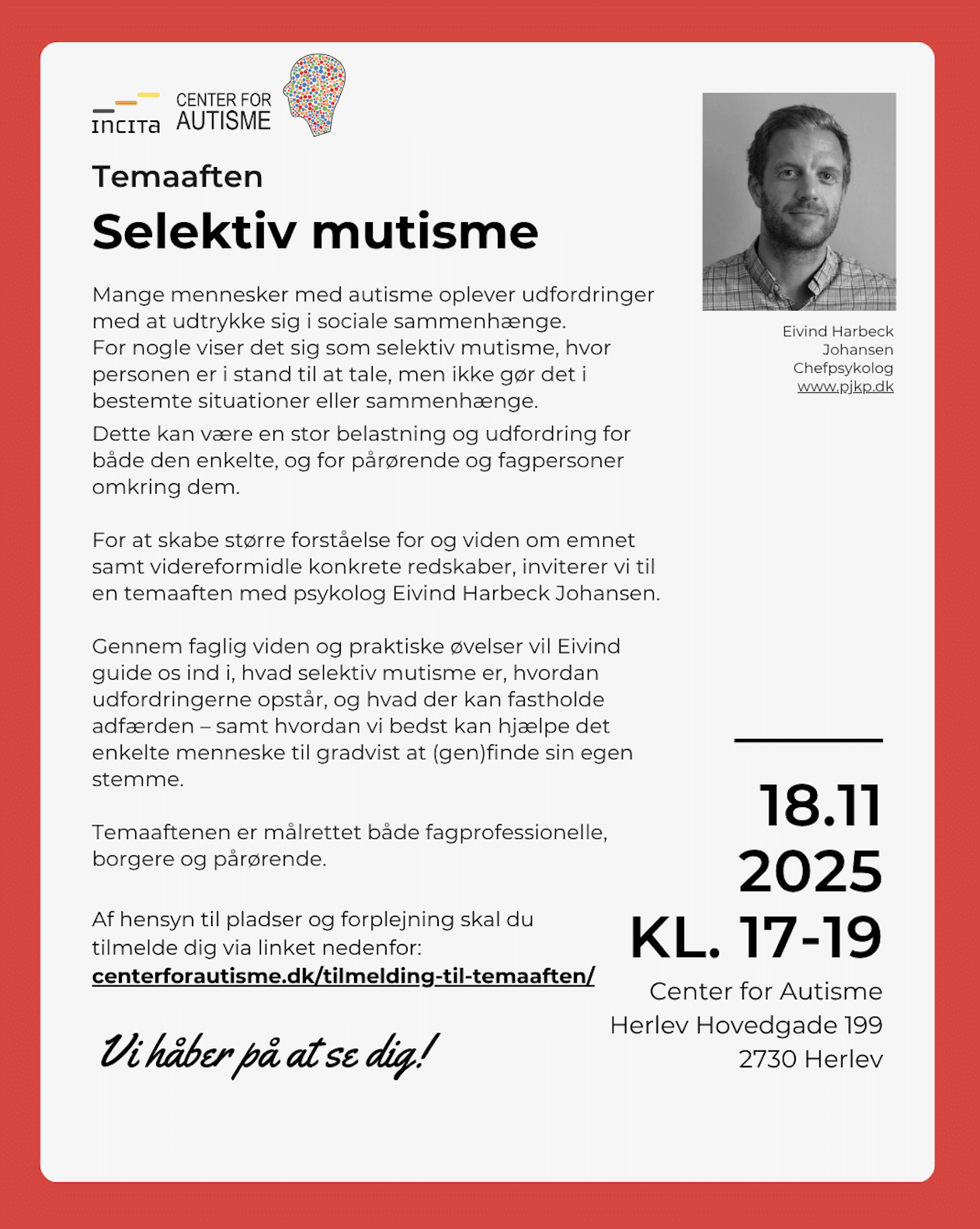 Udsolgt Temaaften: Selektiv mutisme med Eivind Harbeck Johansen 18/11